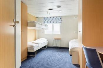 トリプルキャビン部屋の広さ: 約14㎡ / シングルベッド/二段ベッド/シャワー/トイレ/洗面台/クローゼット/ライティングデスク/椅子/エアコン/ヘアドライヤー/バスローブ/シャンプー/リンス/ボディソープ