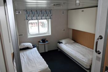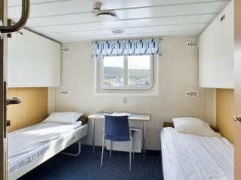 ツインキャビン部屋の広さ: 約10㎡ / ツインベッド/シャワー/トイレ/洗面台/クローゼット/ライティングデスク/椅子/エアコン/ヘアドライヤー/バスローブ/シャンプー/リンス/ボディソープ -