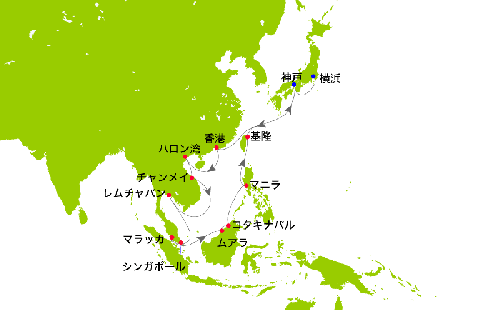 | 15 | 02/11 (月) 船内泊 | レムチャバン〔タイ〕 |
