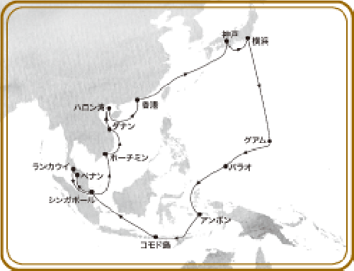 | 31 | 2/22(水) | ハロン湾(ベトナム) 海と島々が織りなす幻想的な世界を堪能 穏やかな海面から奇岩が突き出した神秘的な風景は、「海の桂林」とも称されています。 ※入港中にハロン湾の風景をお楽しみいただけます。 ※オプショナルツアーに参加の方以外は外出できません。 OP 八口ン湾遊覧と鍾乳洞見学 |