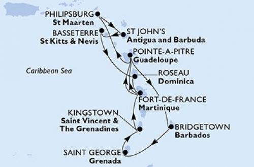 〈主要な寄港地〉 ブリッジタウン / セント・ジョージズ / キングスタウン / フォール=ド=フランス / ポワンタピートル / フィリップスバーグ / セントジョンズ / バセテール / ロゾー