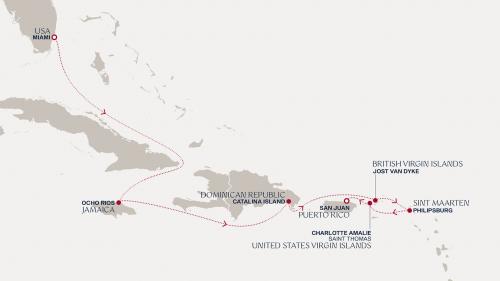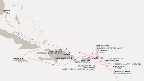 〈主要な寄港地〉 マイアミ / オーチョリオス / ポートサイド / フィリップスバーグ / チャンメイ / サンファン / プンタレナス / ポワンタピートル / ロードタウン / アンバーコーブ