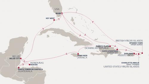 〈主要な寄港地〉 マイアミ / アンバーコーブ / レヴァンタド島 / サンファン / チャンメイ / ヴァージン・ゴルダ島 / オーチョリオス / サントロペ / ロアタン / ベリーズ / キーウェスト
