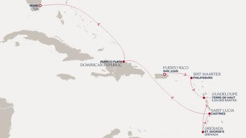 〈主要な寄港地〉 ブリッジタウン / セント・ジョージズ / キングスタウン / フォール=ド=フランス / ポワンタピートル / フィリップスバーグ / セントジョンズ / バセテール / ロゾー / カストリーズ