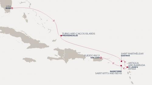 〈主要な寄港地〉 サンファン / シャーロットアマリー/セントトーマス島 / バセテール / カブリッツ / セント・ジョージズ / ブリッジタウン / フィリップスバーグ / セントジョンズ