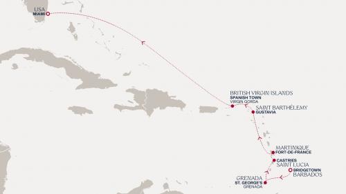 〈主要な寄港地〉 ブリッジタウン / セント・ジョージズ / カサブランカ / フォール=ド=フランス / ヴァージン・ゴルダ島 / マイアミ / プンタレナス / レ・サント諸島/グアドループ / ロードタウン / サンファン