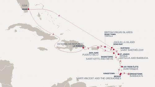 〈主要な寄港地〉 ブリッジタウン / フォール=ド=フランス / バセテール / サンファン / ロードタウン / プンタレナス / マイアミ / ラ・ロマーナ / ケチカン