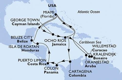 〈主要な寄港地〉 マイアミ / ジョージタウン / オーチョリオス / ウィレムスタード / クラレンダイク / オランヘスタード / カルタヘナ / コロン / プエルトリモン / ロアタン / ベリーズ