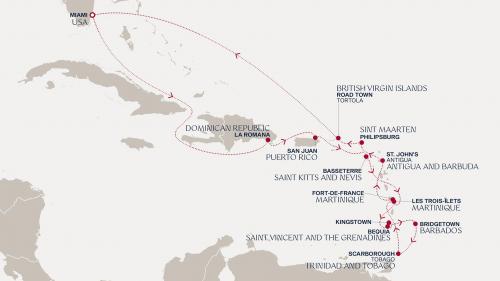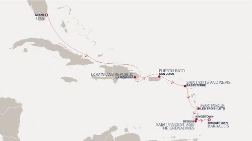 〈主要な寄港地〉 マイアミ / ラ・ロマーナ / サンファン / バセテール / ケチカン / ブリッジタウン / フォール=ド=フランス / プンタレナス / フィリップスバーグ / ロードタウン