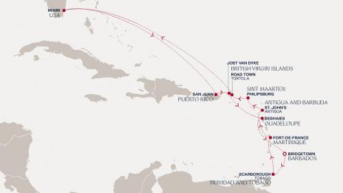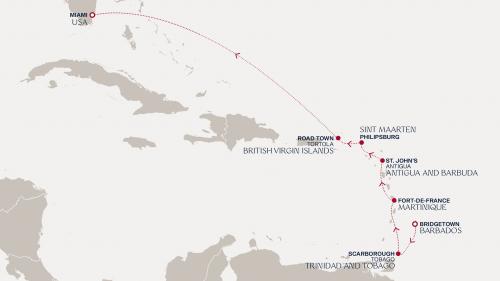 〈主要な寄港地〉 ブリッジタウン / フォール=ド=フランス / プンタレナス / フィリップスバーグ / ロードタウン / マイアミ / バセテール / サンファン