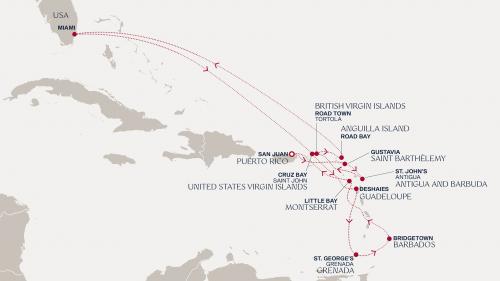 〈主要な寄港地〉 グアドループ / セントキッツ / トルトラ / ラ・ロマーナ / サンタカタリナ島 / サマナ / アンバーコーブ / グランドターク / ケチカン / バルバドス