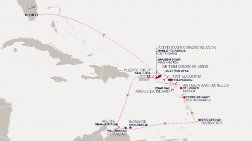 〈主要な寄港地〉 ブリッジタウン / キングスタウン / セント・ジョージズ / フォール=ド=フランス / ポワンタピートル / ロードタウン / フィリップスバーグ / バセテール / セントジョンズ