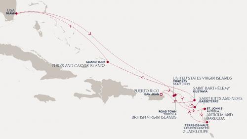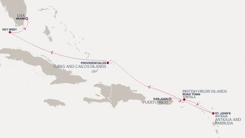〈主要な寄港地〉 マイアミ / グレート・スターラップ・ケイ / セロ・ブルホ/サン・クリストバル島 / オランヘスタード / ウィレムスタード / ファルマス / ジョージタウン