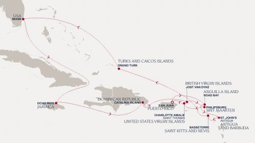 〈主要な寄港地〉 サンファン / プンタレナス / バセテール / グランドターク / マイアミ / オーチョリオス / ポートサイド / フィリップスバーグ / チャンメイ