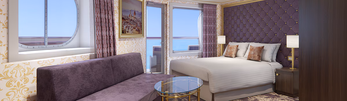 - オーナーズスイートクラスの客室でも比較的リーズナブルに!スイート客室の特典は他船に変わりないためオススメです。