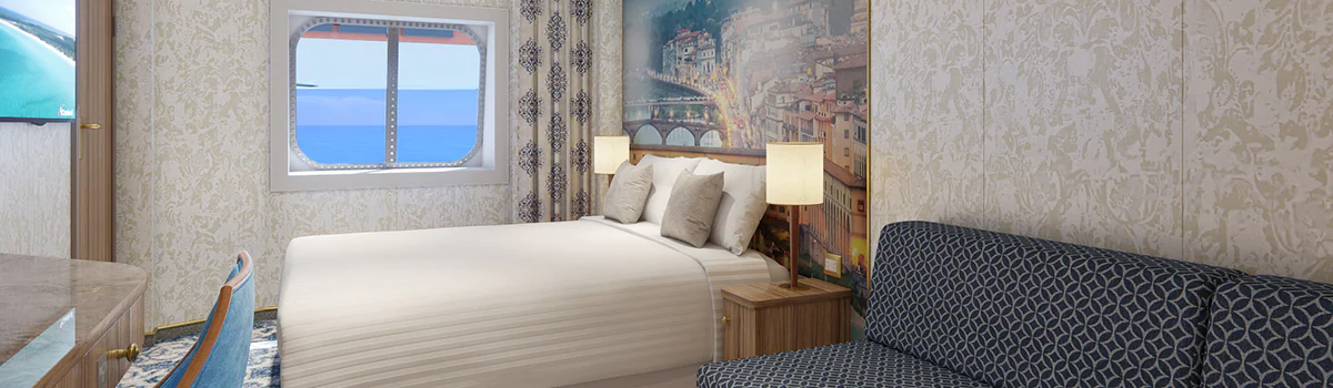 オーシャンビュー/ ピクチャーウィンドウからは、快適なステートルームから、陸上のどこにも見られない景色を眺めることができます。 -