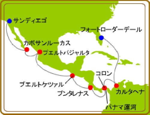 パナマ運河の出入り口の街、コロンへ寄港。岸壁付近の出店でのショッピングなどが楽しめます。 |