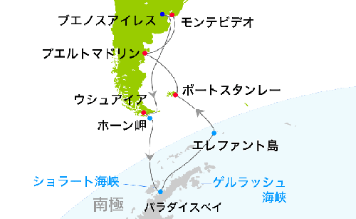 南極半島遊覧クルーズの順序は変更される場合があり、掲載日程は目安となります。
