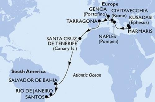 〈主要な寄港地〉 クサダシ / マルマリス / ナポリ / チビタベッキア/ローマ / ジェノバ / タラゴナ / サンタ・クルス・デ・テネリフェ / サルバドール / リオデジャネイロ / サントス(サンパウロ)