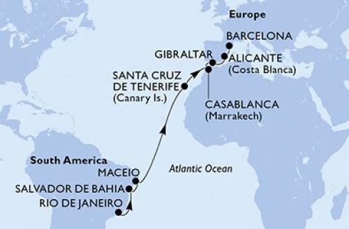 〈主要な寄港地〉 リオデジャネイロ / サルバドール / マセイオ / サンタ・クルス・デ・テネリフェ / カサブランカ / ジブラルタル海峡 / アリカンテ / バルセロナ