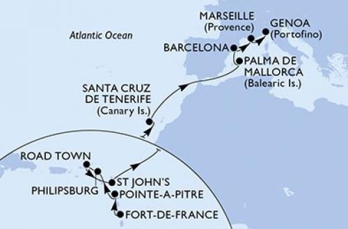 〈主要な寄港地〉 フォール=ド=フランス / ポワンタピートル / フィリップスバーグ / ロードタウン / セントジョンズ / サンタ・クルス・デ・テネリフェ / パルマデマヨルカ / バルセロナ / マルセイユ