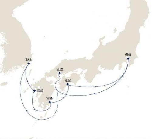 横浜 / 鹿児島 / 宮古島 / 香港 / ハロン湾 / ダナン / ホーチミン / シアヌークビル / シンガポール / バンダルスリブガワン / コタキナバル(ボルネオ島) / 那覇 / 横浜
