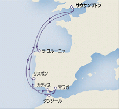 サウサンプトン / フンシャル(マディラ島) / テネリフェ / グランカナリア / ランサローテ島 / ラコルーニャ