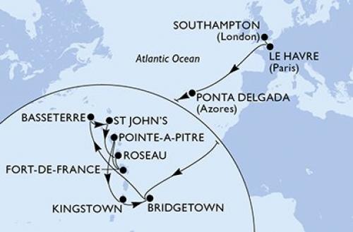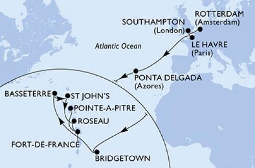 〈主要な寄港地〉 ロッテルダム / サウサンプトン / ルアーブル / ポンタデルガーダ(アソーレス諸島) / ブリッジタウン / バセテール / セントジョンズ / ロゾー / フォール=ド=フランス / ポワンタピートル / キングスタウン / カストリーズ / セント・ジョージズ