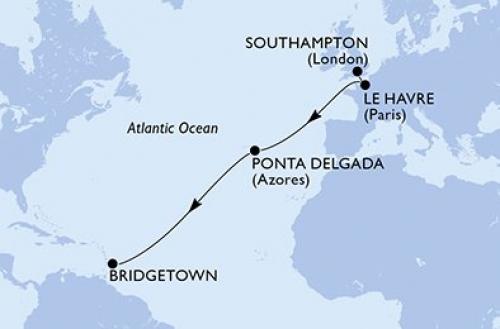 〈主要な寄港地〉 サウサンプトン / ルアーブル / ポンタデルガーダ(アソーレス諸島) / ブリッジタウン / バセテール / セントジョンズ / ロゾー / フォール=ド=フランス