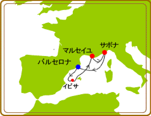 バルセロナ / パルマデマヨルカ / パレルモ / チビタベッキア/ローマ / サボナ / マルセイユ