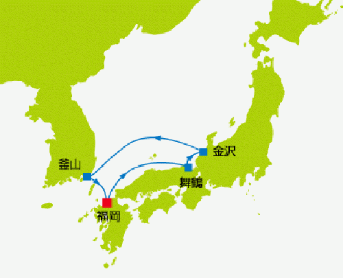 | 3 | 釜山(韓国) | 14:00 | 22:00 |