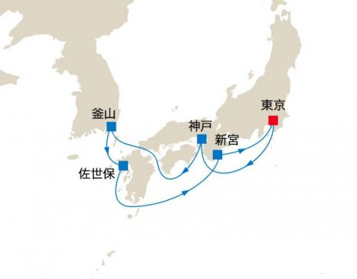 東京 / 長崎 / 釜山 / 上海 / 香港 / ダナン / シンガポール / ポートクラン(クアラルンプール) / ペナン島 / ポートビクトリア / ポートルイス / ラ・ポッスシオン / ケープタウン / ウォルビスベイ / ミンデロ / チビタベッキア/ローマ / リボルノ/フィレンツェ / ジェノバ / マルセイユ
