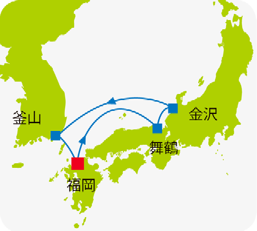 金沢(石川県) / 下関 / 済州島 / 博多(福岡) / 境港