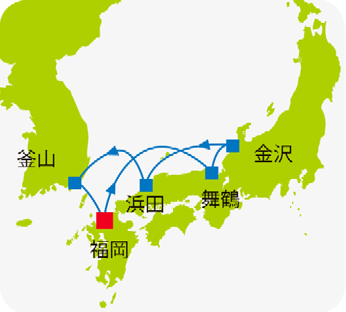福岡 / 舞鶴 / 金沢(石川県) / 釜山 / 佐世保