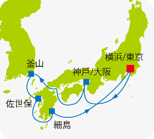 神戸 / 別府 / 釜山 / 細島(宮崎) / 高知