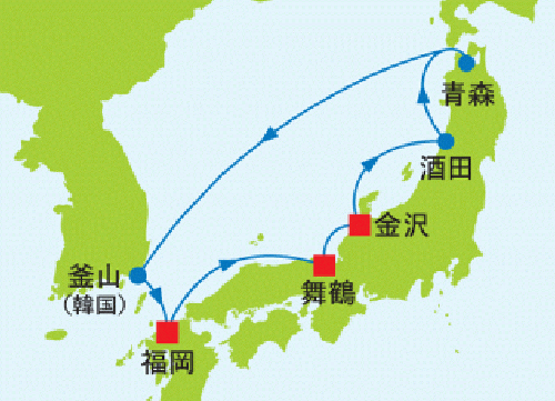 | 7 | 釜山(韓国) | 9:00 | 17:00 |