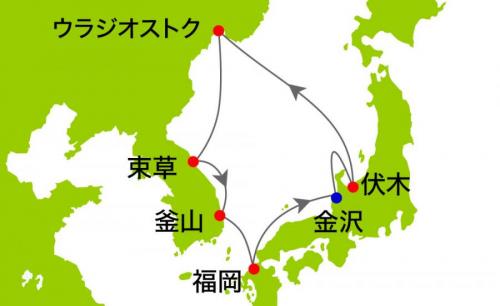 金沢(石川県) / 下関 / 済州島 / 博多(福岡) / 境港