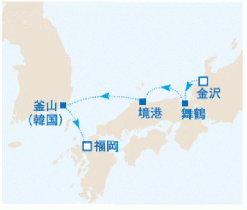 金沢(石川県) / 下関 / 済州島 / 博多(福岡) / 境港