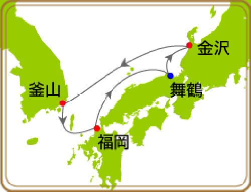 博多(福岡) / 舞鶴 / 金沢(石川県) / 釜山