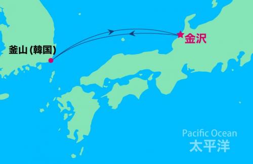 金沢(石川県) / 下関 / 済州島 / 博多(福岡) / 境港