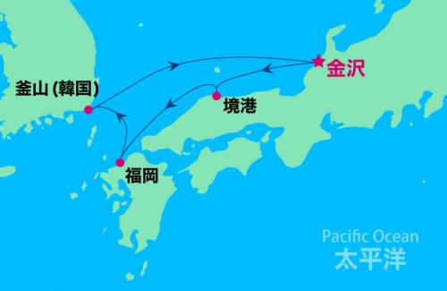 金沢(石川県) / 下関 / 済州島 / 博多(福岡) / 境港