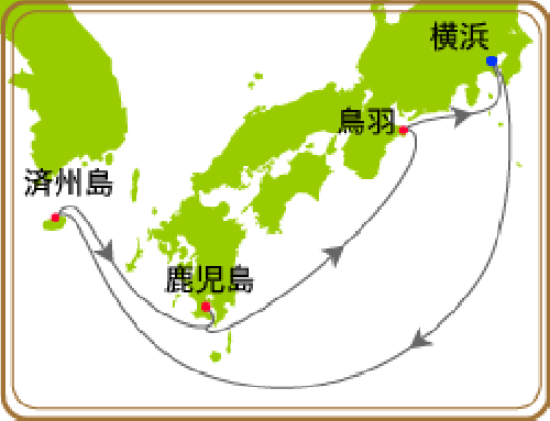 横浜 / 名古屋(愛知) / 瀬戸内海 / 釜山 / 八代 / 油津(宮崎) / 高知 / 神戸
