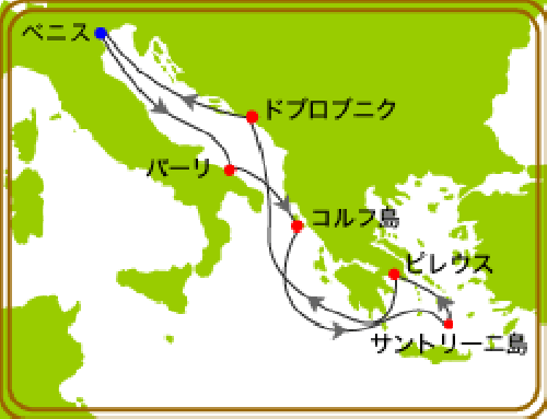 ベニス / バーリ / コルフ島 / サントリーニ島 / アテネ/ピレウス / ドブロブニク