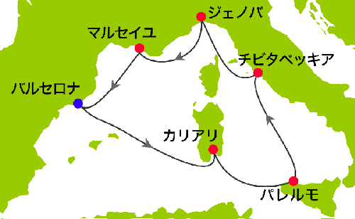 バルセロナ着後、送迎車にてバルセロナ港へ 『コスタフィレンツェ』乗船手続 19:00 バルセロナ(スペイン)出港 |
