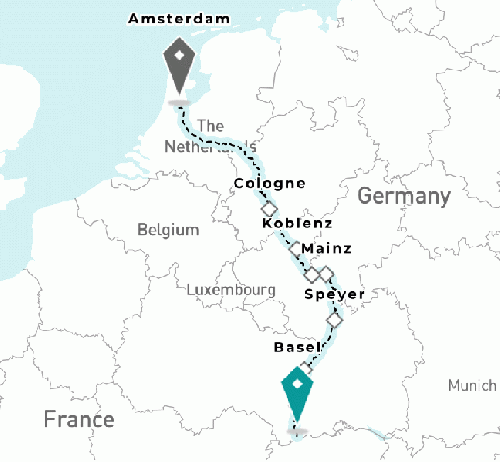 バーゼル / ブライザッハ / ストラスブール / マンハイム / リューデスハイム / コブレンツ / ケルン / アムステルダム