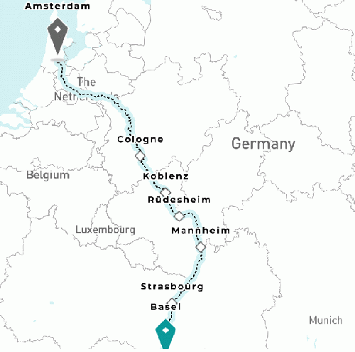 バーゼル / ブライザッハ / ストラスブール / マンハイム / リューデスハイム / コブレンツ / ケルン / アムステルダム
