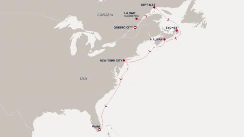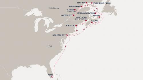 〈主要な寄港地〉 ケベックシティ / セントローレンス湾 / シャーロットタウン/プリンスエドワード島 / シドニー(カナダ) / ハリファックス / セントジョンズ / ボストン / ノーフォーク / マイアミ
