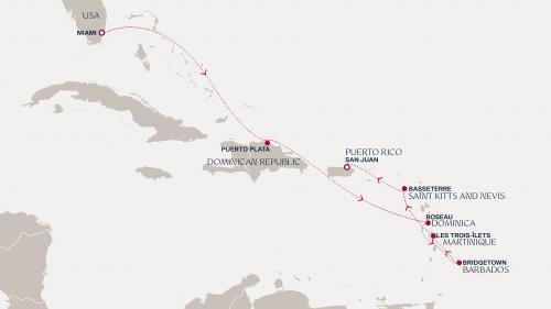 〈主要な寄港地〉 マイアミ / チャンメイ / レ・サント諸島/グアドループ / ブリッジタウン / フォール=ド=フランス / バセテール / サンファン / ロードタウン / プンタレナス