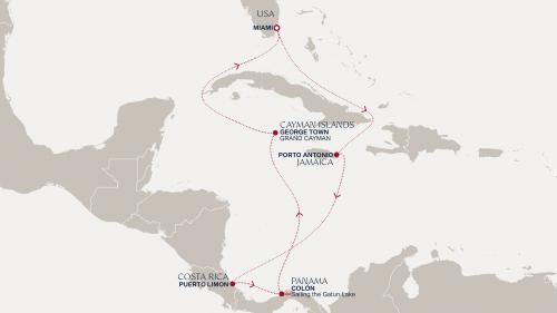 〈主要な寄港地〉 マイアミ / プンタレナス / ロゾー / ブリッジタウン / セント・ジョージズ / カサブランカ / フォール=ド=フランス / ヴァージン・ゴルダ島