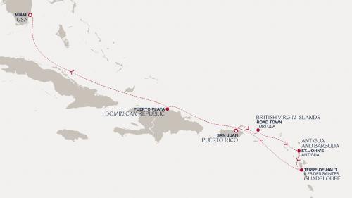 〈主要な寄港地〉 マイアミ / フィリップスバーグ / バセテール / サンファン / チャンメイ / プンタレナス / レ・サント諸島/グアドループ / アンバーコーブ